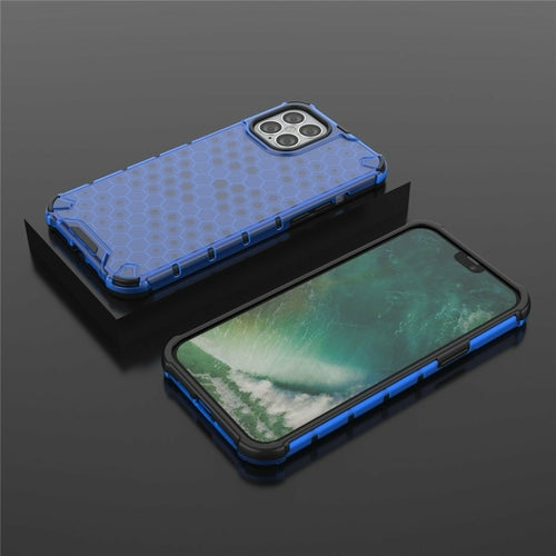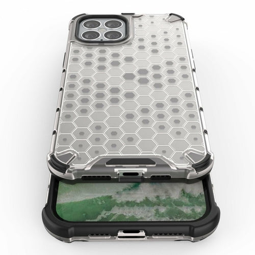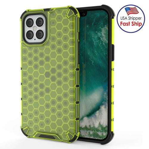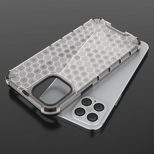 This iPhone 12 Pro Max Honeycomb SlimGrip Hybrid Bumper Case uses soft TPU + hard PC 2-in-1 construction with a 4-corner airbag and protruding edge design that not only prevents impact, but also shields the surface to protect the phone from damage. This durable case sturdy shell is UV-painted and double-coated PC board, shiny and scratch-resistant, translucent TPU edge glittering;Fashionable and beautiful honeycomb design makes your Phone unique. It looks great both in feel and appearance.